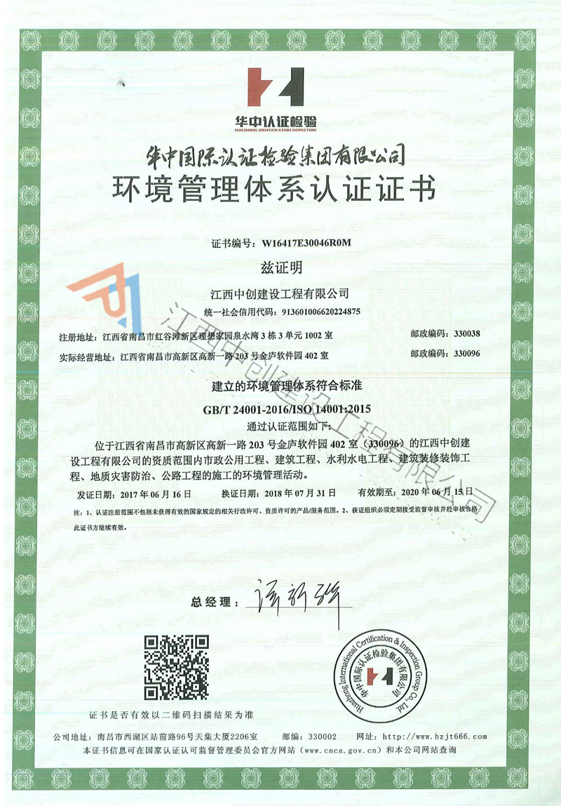 • 環境管理體系認證證書2018-08-17